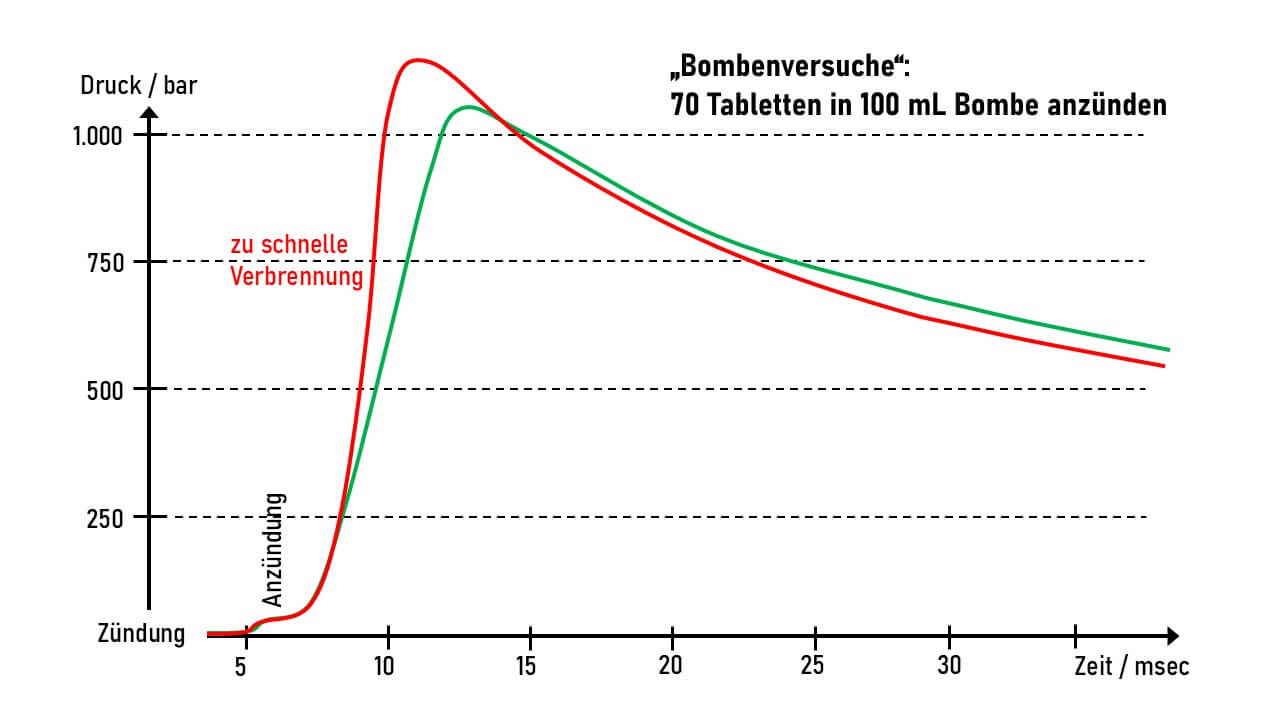 Closed-Vessel-Versuche sind ein anerkanntes Verfahren, um die Leistungsfähigkeit und das Alterungsverhalten von Airbag-Treibladungen unter definierten Bedingungen zu untersuchen. Dabei wird die Treibladung gezündet und der entstehende Druckverlauf in einem exakt kalibrierten Prüfdruckbehälter gemessen. Diese Methode erlaubt es, verschiedene Parameter wie Verbrennungsrate, Druckanstieg, maximale Druckspitze und zeitliche Druckentwicklung präzise zu erfassen. Vor allem bei ammoniumnitratbasierten Treibladungen, die durch Alterung (z.B. Feuchtigkeitseintrag oder thermische Belastung) ihre Eigenschaften verändern können, liefert der Closed-Vessel-Test wichtige Anhaltspunkte: Gibt es eine signifikant beschleunigte Abbrandrate? Entsteht ein unkontrollierter, stark erhöhter Druck? Zeigen sich Abweichungen von den Sollkennwerten des Neuzustands?